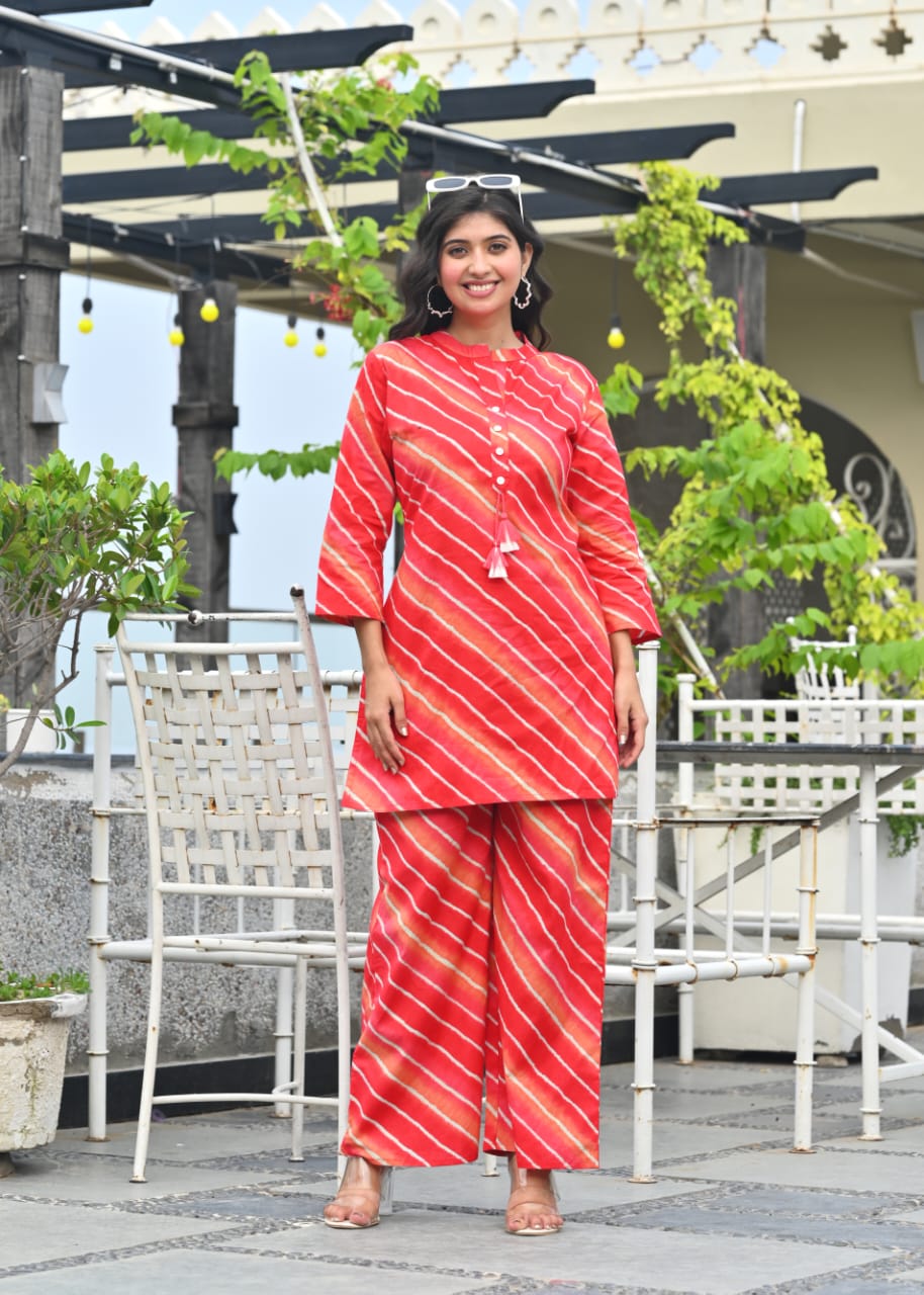 Red Tie-Dye Cotton Co-ord Set