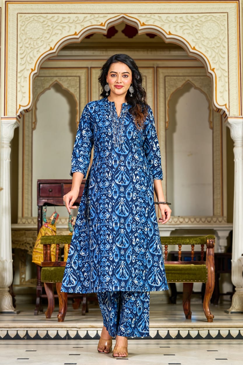Indigo Blue Handblock Printed Cotton Kurta Set