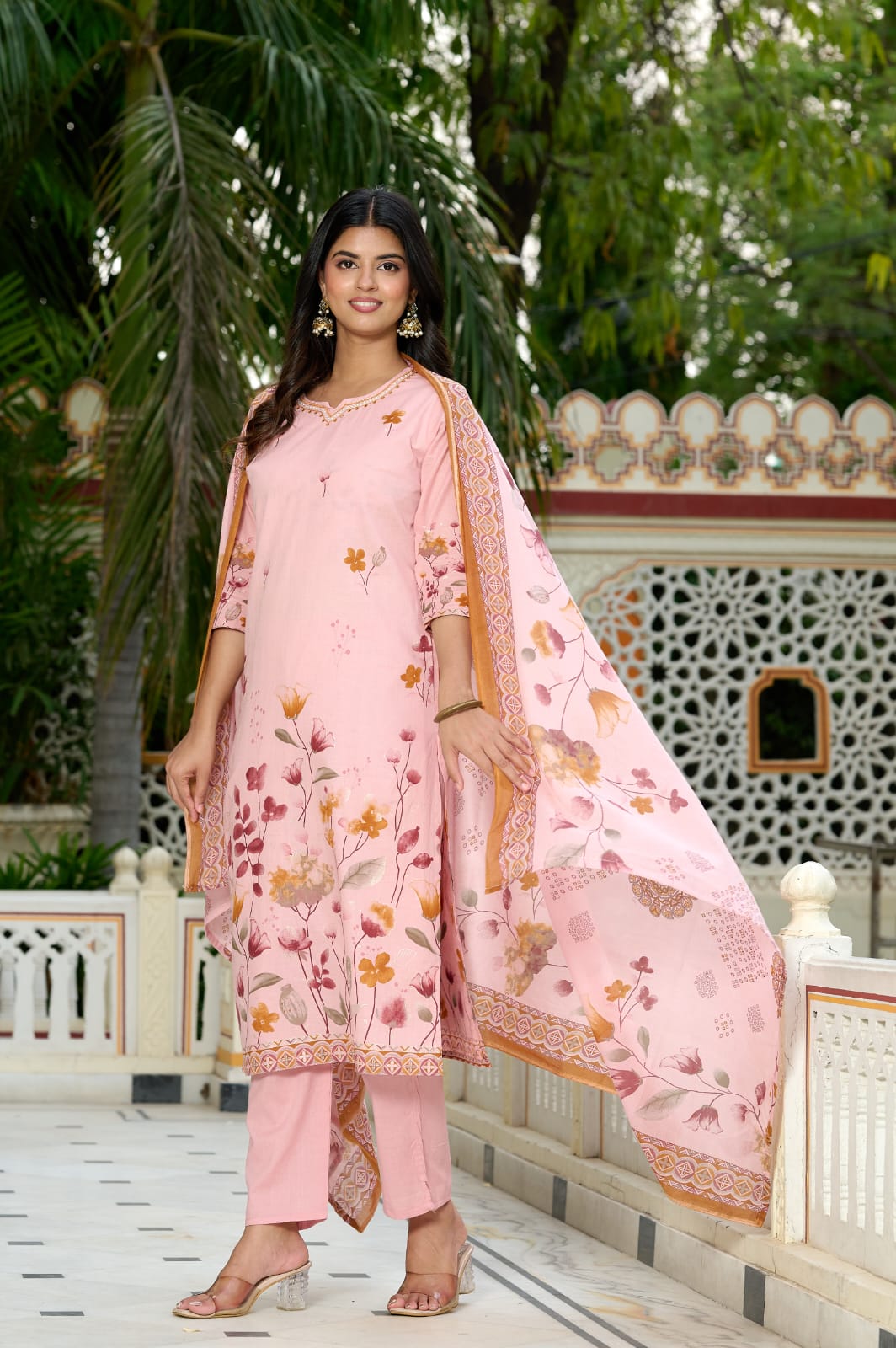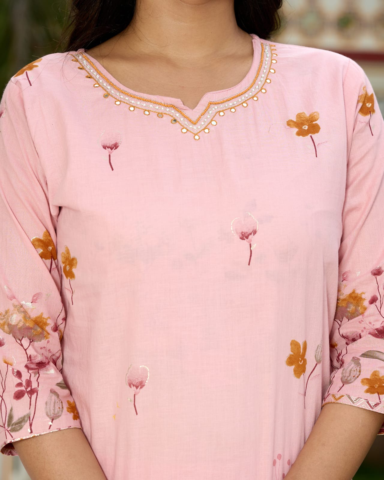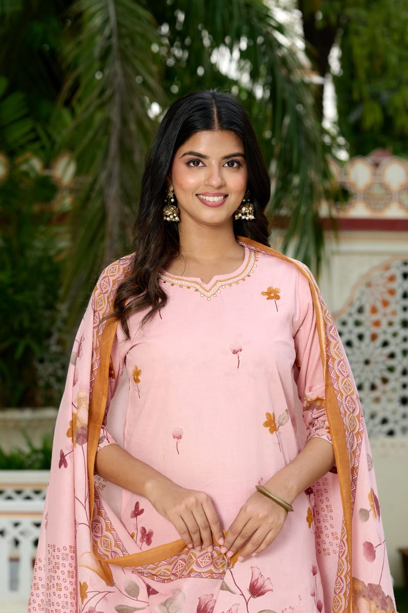 Blush Pink Floral Printed Lawn Suit with Embroidered Detailing