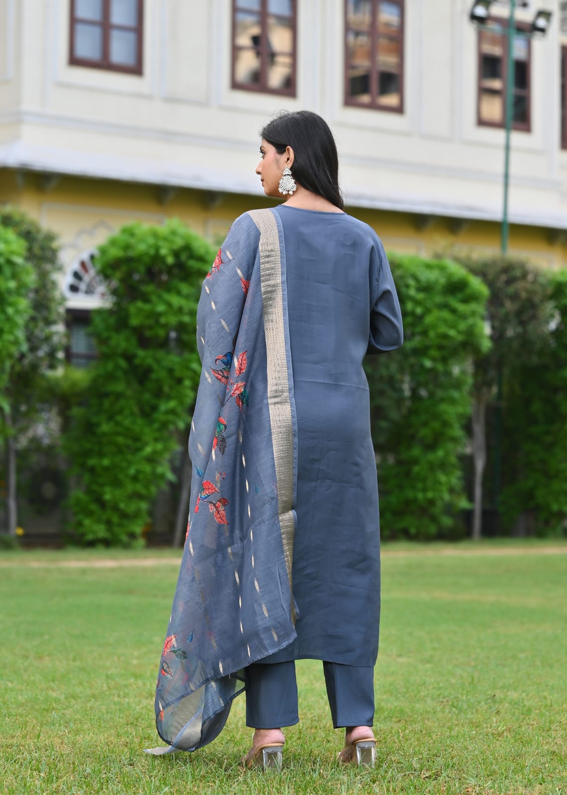 Step into effortless elegance with this charcoal grey 3-piece unstitched lawn suit, thoughtfully designed for modern women who appreciate subtle luxury. The outfit features a beautifully embroidered V-neckline and delicate thread motifs scattered across the shirt, adding a refined charm. Paired with a matching trouser and a lightweight digital printed dupatta showcasing vibrant floral designs, this ensemble perfectly balances grace and sophistication.