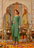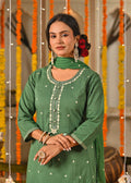 Emerald Green Embroidered Cotton Suit Set with Dupatta