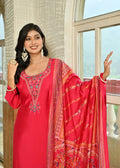 Magenta Embroidered Cotton Suit Set with Printed Dupatta