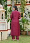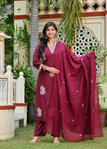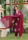Maroon Embroidered Cotton Suit Set with Dupatta