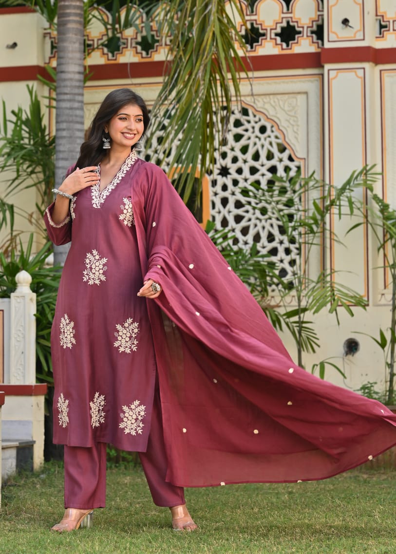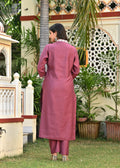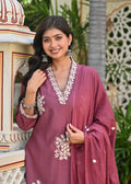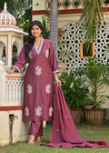 Mauve Embroidered Cotton Suit Set with Dupatta