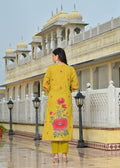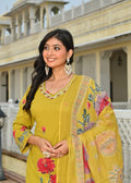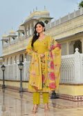 Mustard Yellow Floral Printed Cotton Suit Set with Dupatta