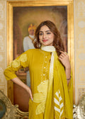 Infuse your wardrobe with a burst of sunshine and elegance with this mustard yellow 3-piece lawn suit. Featuring a contemporary floral print with artistic detailing, this ensemble perfectly blends tradition with modern style. The straight-cut kurta with minimal embroidery along the neckline, paired with a matching trouser and a beautifully coordinated dupatta, creates a graceful and eye-catching look—ideal for festive occasions, casual outings, and day celebrations.