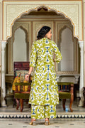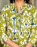 Bring a touch of traditional charm and contemporary elegance to your wardrobe with this Olive Green Ikat Printed Cotton Kurta Set from UVULA. Crafted from soft, breathable cotton, this set is designed to keep you stylish and comfortable all day long.