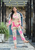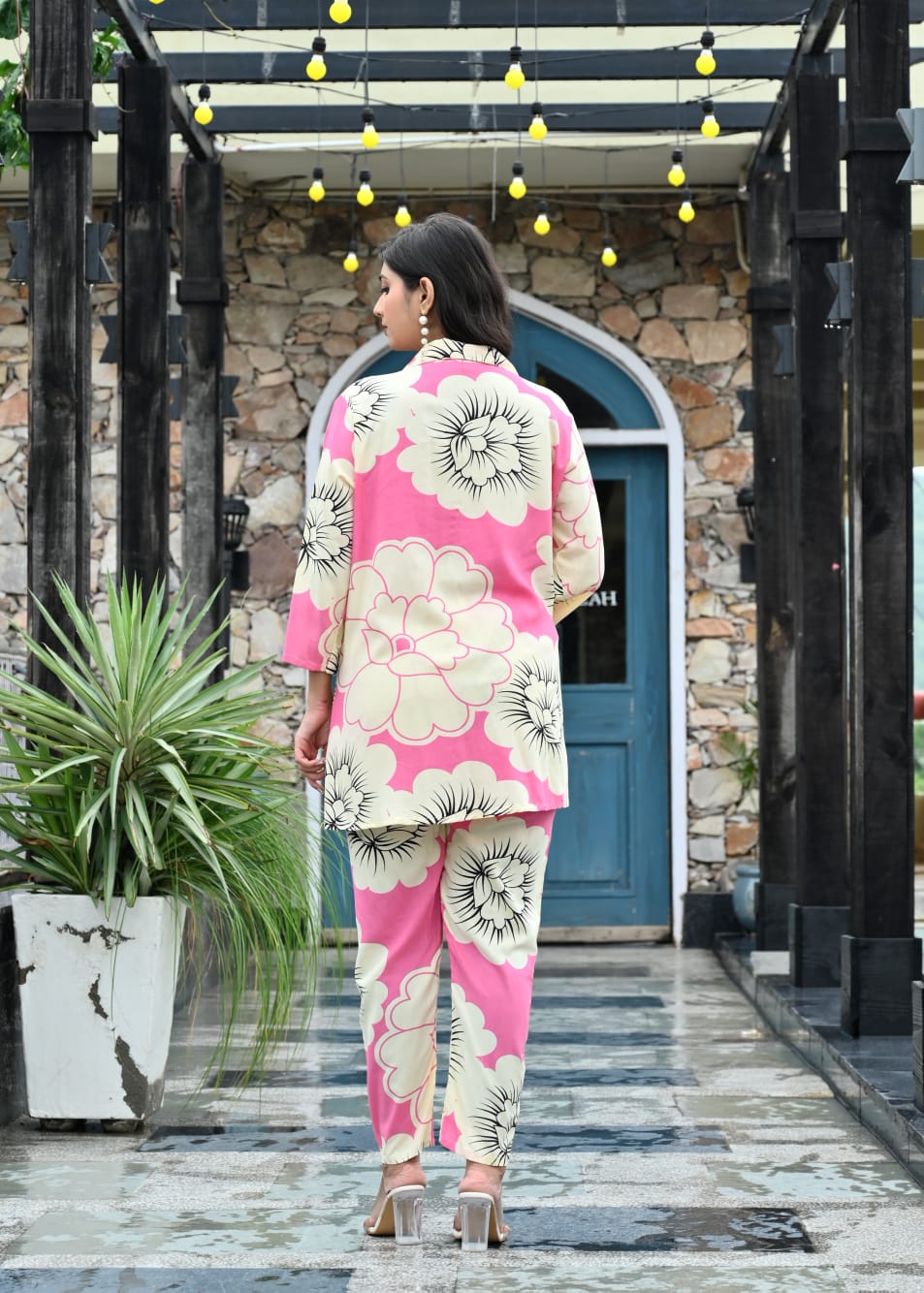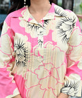 Turn heads effortlessly with this Pink & Cream Floral Printed Co-ord Set from UVULA, a perfect blend of bold florals and breezy comfort. Designed for the modern woman, this co-ord set radiates freshness and confidence with its vibrant color palette and relaxed silhouette.
