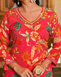 Add a burst of color and charm to your ethnic wardrobe with this Uvula Pink Floral Printed Cotton Suit Set. Designed in rich pink hues with vibrant floral motifs, this outfit exudes effortless elegance. The soft cotton fabric ensures all-day comfort, while the beautifully coordinated printed dupatta completes the ensemble with a touch of sophistication.