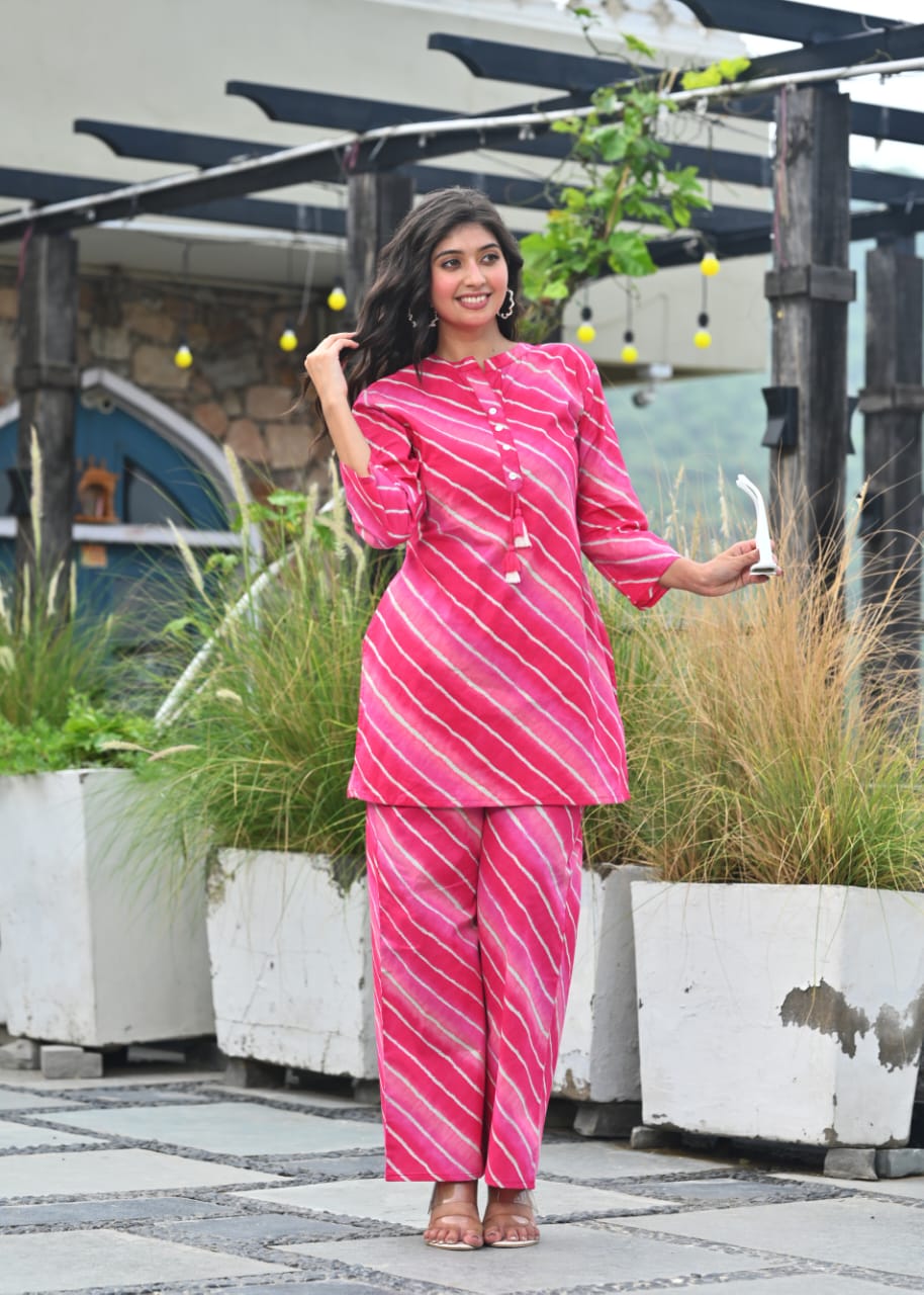 Step out in style with this Pink Tie-Dye Cotton Co-ord Set from Uvula , designed for the modern woman who loves effortless elegance. Crafted from lightweight, breathable cotton, this co-ord set combines comfort with a vibrant touch of fashion.